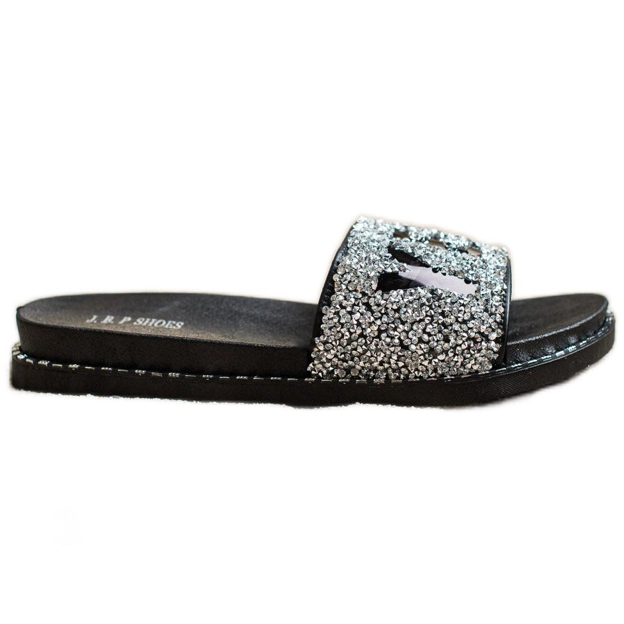 Podrobnosti: SHELOVET Módní žabky s krystaly černý stříbro