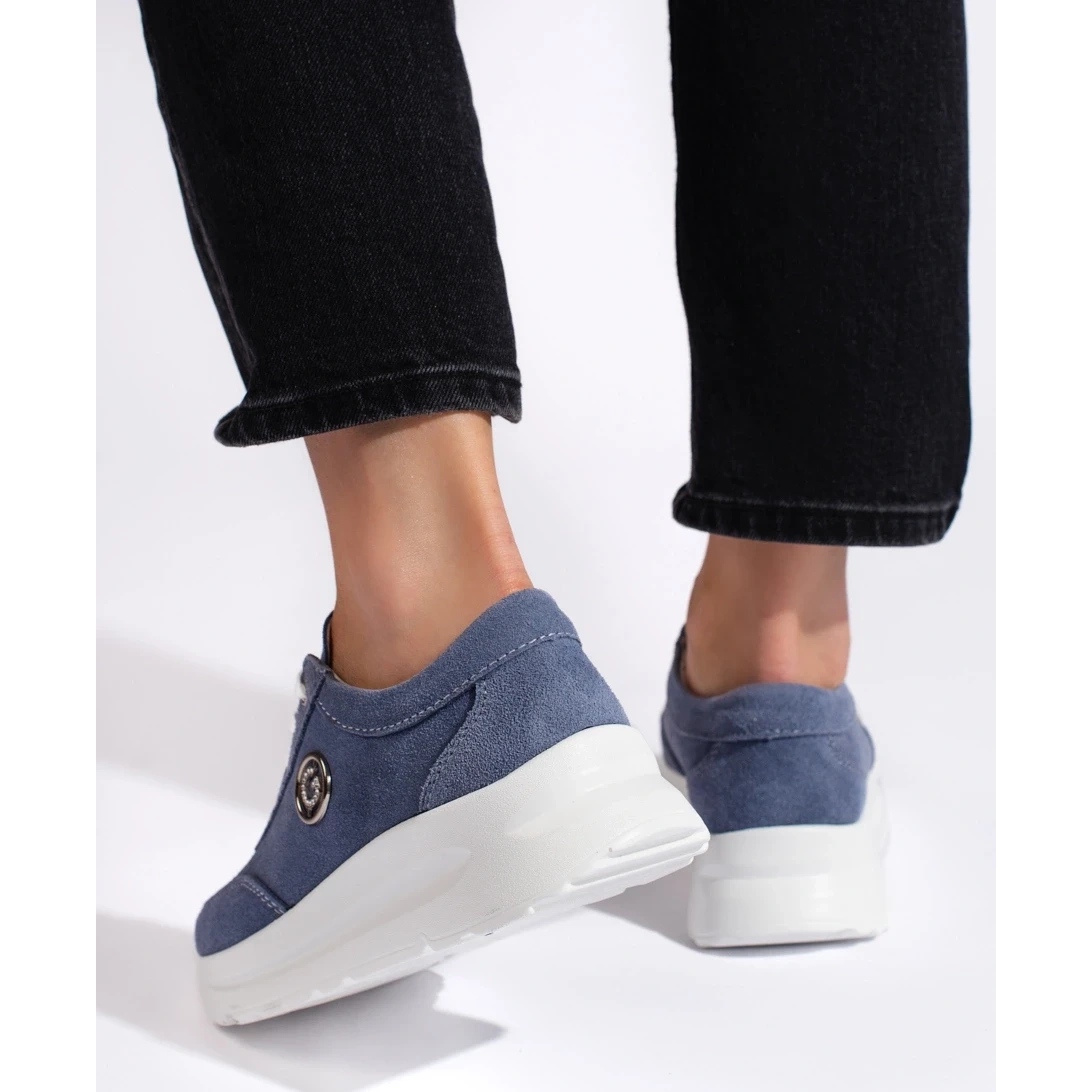 Sportovní styl v kombinaci s luxusními materiály a promyšleným designem dělají z modré kožené sportovní obuvi dokonalou volbu pro každou ženu, která oceňuje kombinaci elegance a pohodlí na nejvyšší úrovni.