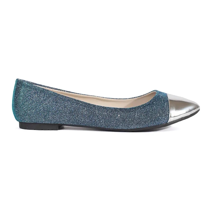 Inna marka Modré lesklé balerínky se stříbrnou špičkou modrý