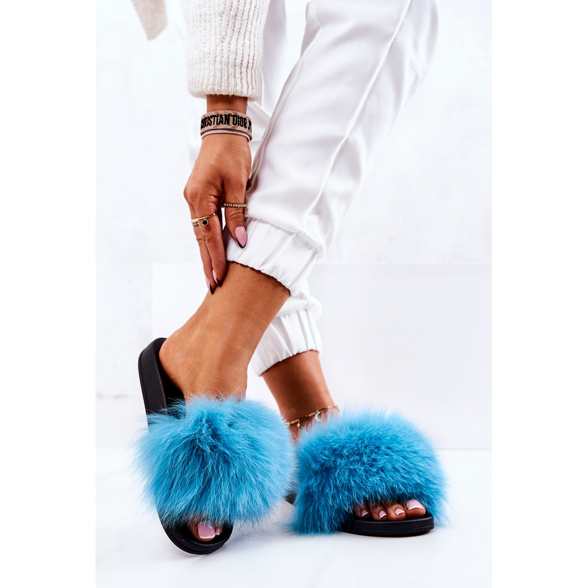 Objevte výjimečný komfort a styl s žabkami FM1 s přírodní kožešinou v krásné modré barvě. Tyto dámské žabky jsou perfektní volbou pro každodenní nošení, kombinují pohodlí s módním designem. Díky nazouvacímu zapínání je jejich nazouvání rychlé a snadné a gumová vložka se jemně přizpůsobí tvaru nohy a poskytuje vám neuvěřitelný komfort v každé situaci.