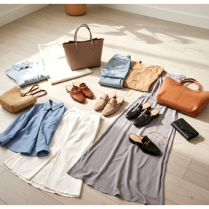 Víkend a procházka: S plátěnou maxi sukní a volnou košilí vytvářejí ploché mokasíny v neutrálních barvách neokázalý, pohodlný vzhled ve stylu slow fashion, který je v roce 2026 mimořádně ceněným estetickým jazykem.