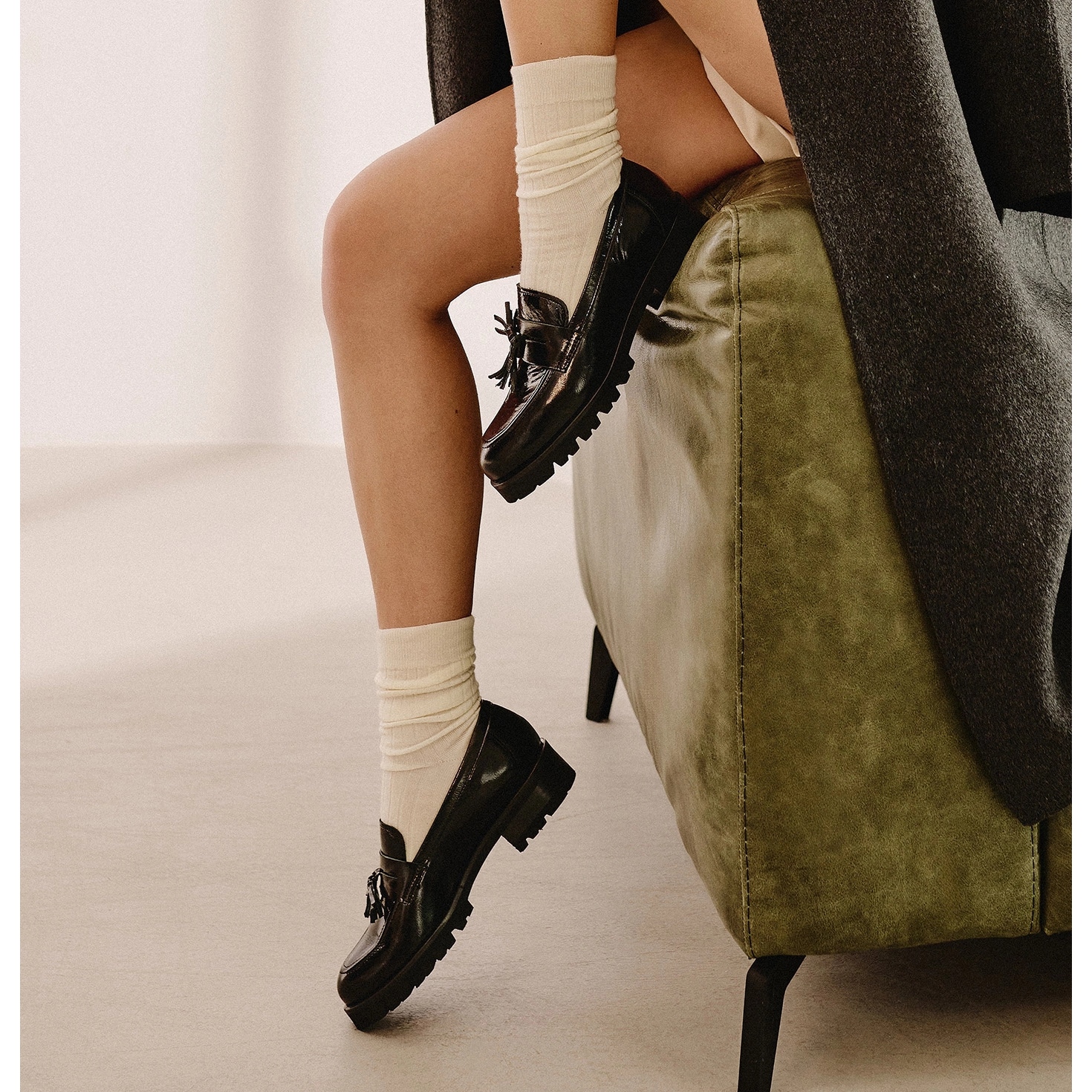 - Modelka: Lakované mokasíny