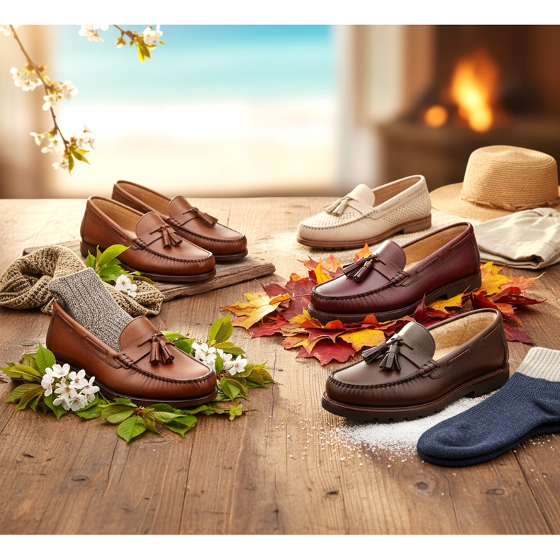 I když jsou mokasíny spojené především s létem, při správném výběru se dají nosit po celý rok. Klíčové je přizpůsobit model a styl povětrnostním podmínkám.