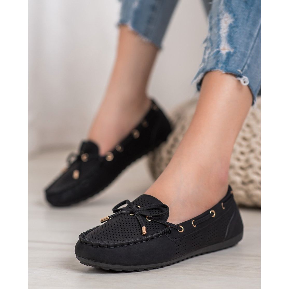 Tento model se vyznačuje zabudovanou, měkkou patou, která zajišťuje pohodlí při nošení, a kulatá špička dodává eleganci. Plastová podrážka je hladká, což usnadňuje chůzi po různých površích. Díky nízkému podpatku 1 cm jsou mokasíny velmi pohodlné a snadno se pořídí pro každou příležitost.