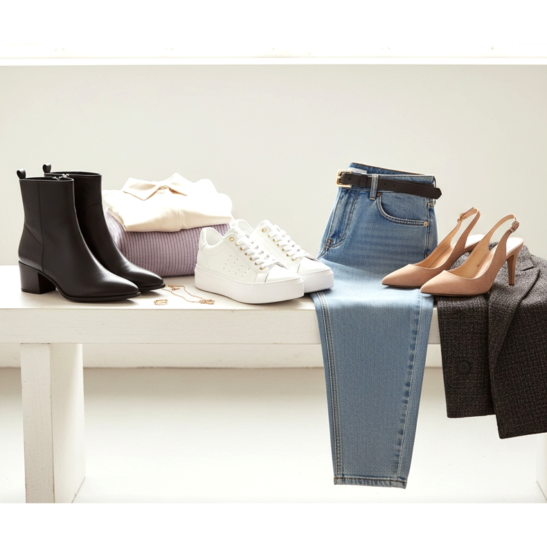 Pamatujte, že mom džíny mají volný střih, proto jsou nejvhodnější vysoké podpatky, které pomohou udržet správné proporce postavy. Vyberte si modely v tlumených barvách, které budou ladit se zbytkem vašeho stylingu, a užijte si oslnivý vzhled bez ohledu na příležitost.