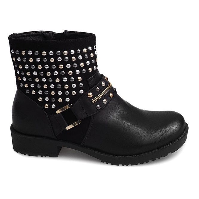 Motorové boty s cvočky 1636 v černé barvě jsou stylovou a pohodlnou volbou pro každou ženu, která si cení módy a pohodlí. Tyto jedinečné boty, stříbrné zdobené kamínky a cvočky, dodají vašemu šatníku trochu rockové atmosféry. Díky zipu a přezce je nazouvání a zouvání bot extrémně snadné.