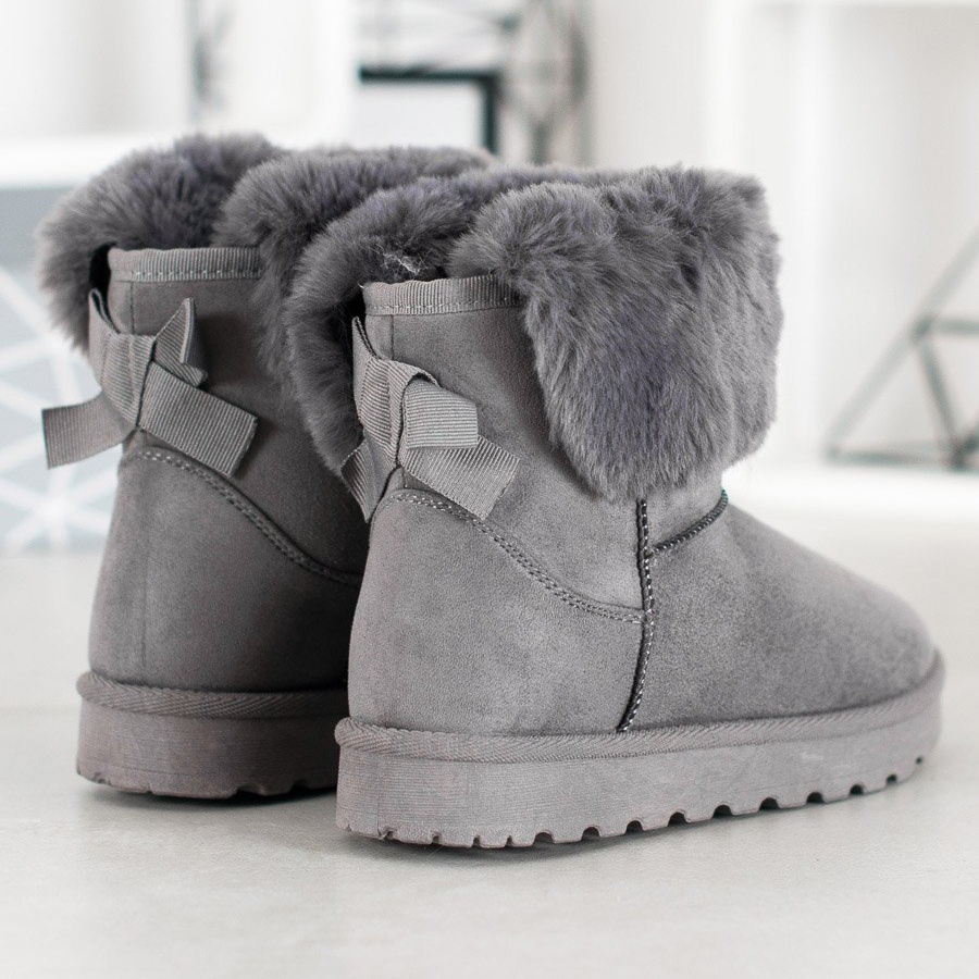 SHELOVET mukluki s šedou kožešinou je perfektní volbou pro ženy, které chtějí spojit pohodlí s elegancí. Tyto teplé sněhule vyrobené z nejkvalitnější semišové ekologické kůže jistě zapadají do aktuálních trendů. Okouzlující mašlička a umělá kožešina na svršku jim dodávají jedinečný charakter, takže každý krok bude potěšením.