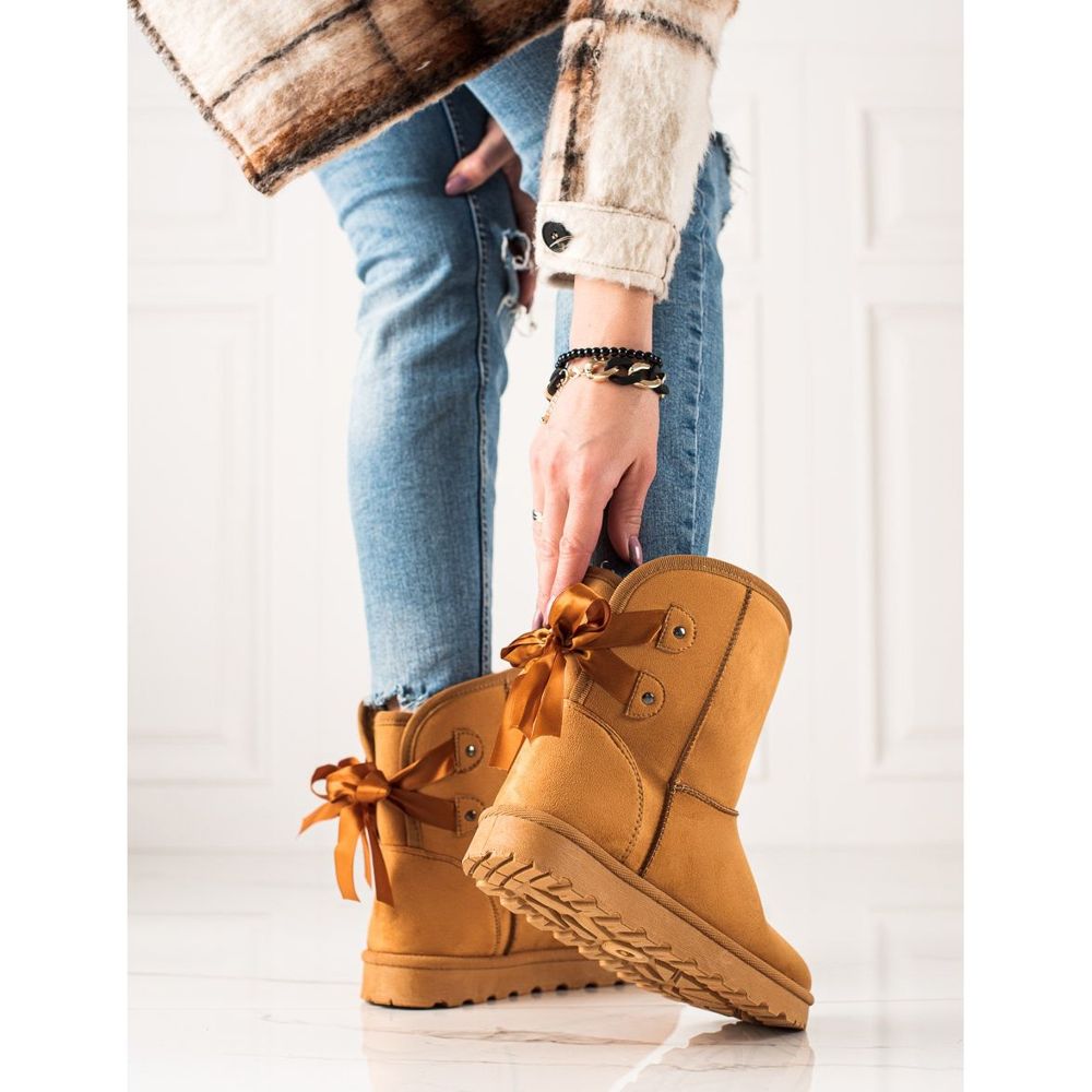 Hledáte pohodlné a stylové boty na nadcházející podzim a zimu? Mukluky TRENDI se žlutou mašlí jsou perfektní volbou pro každou ženu, která si cení módy a pohodlí. Tyto sněhule vyrobené z vysoce kvalitní ekologické semišové kůže spojují estetiku a funkčnost.