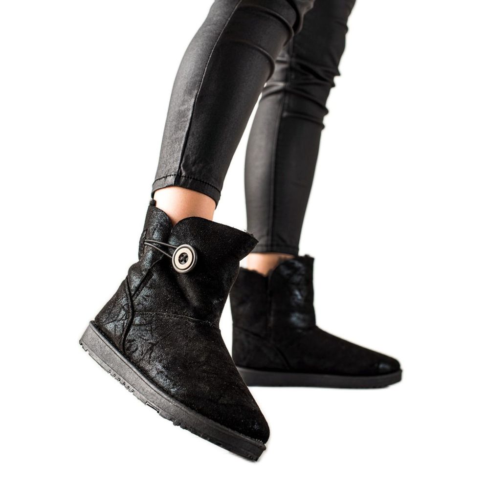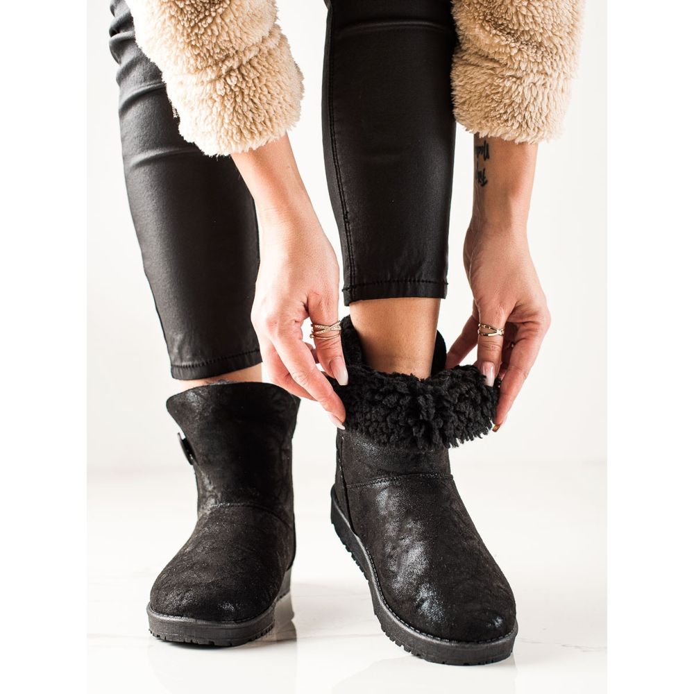 Tyto boty vyrobené z vysoce kvalitní imitace semiše se vyznačují elegantní černou barvou a decentním třpytivým akcentem, který jim dodává jedinečný lesk. Měkký, zabudovaný podpatek a textilní podšívka zajistí pohodlné nošení a zateplená kožešinová stélka navíc ochrání vaše nohy před chladem.