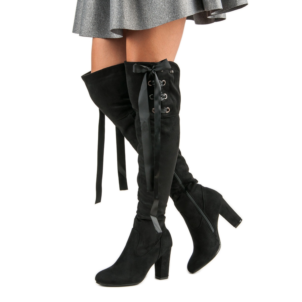 Black Suede R'S Thigh High Boots jsou nabídkou, která jistě upoutá pozornost každého milovníka módy. Tyto elegantní boty na podpatku nejen zeštíhlí postavu, ale dodají i sebevědomí, které je pro ženy důležité v každé situaci. Díky svému klasickému designu a jemným akcentům, jako je zapletená černá stuha na svršku, jsou perfektním doplňkem každodenního i večerního stylu.