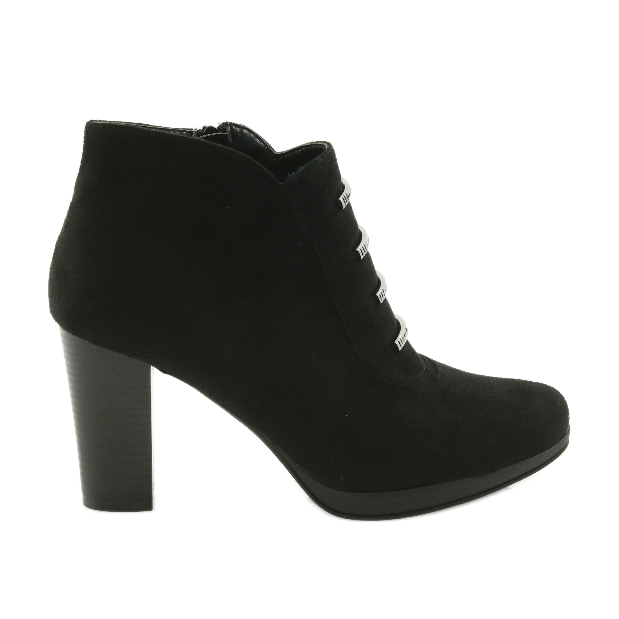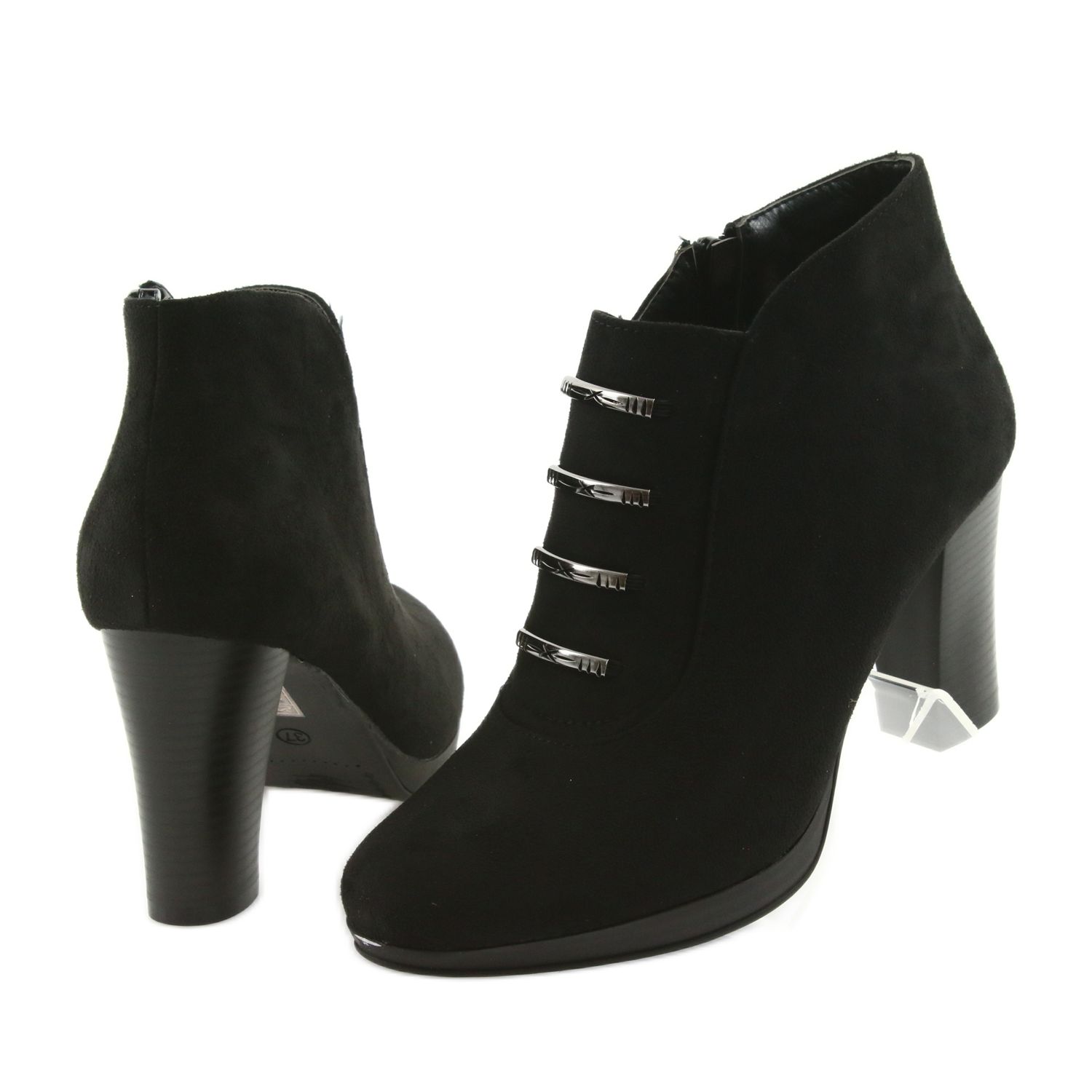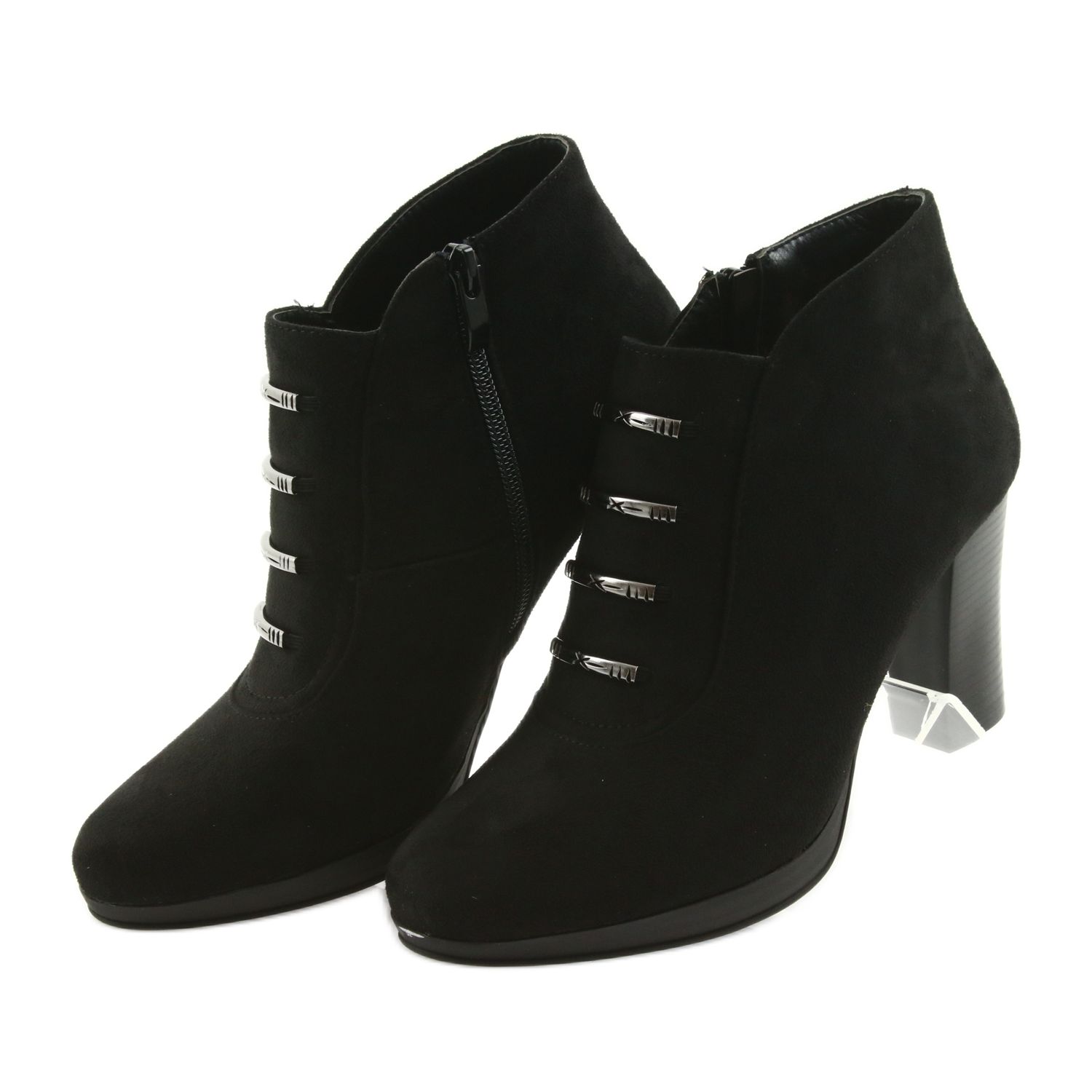 Kotníkové boty M.Daszyński na vysokém podpatku jsou dokonalou kombinací stylu a pohodlí, kterou by měla mít ve svém šatníku každá žena. Tyto černé kotníkové boty vyrobené z vysoce kvalitní eko-semišové kůže jsou nejen elegantní, ale také příjemné na nošení. Díky zateplení jsou perfektní pro chladnější dny a jejich výška ke kotníkům poskytuje dodatečnou podporu a ochranu.