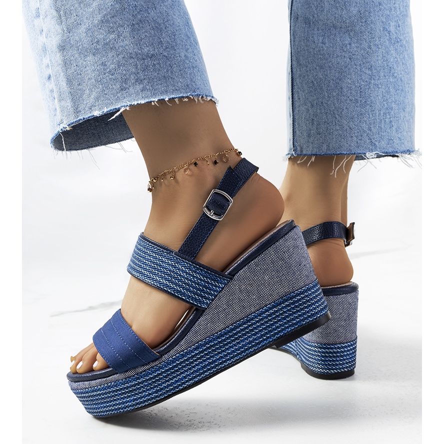 Inna marka Námořnické modré sandály na klínku Rocha modrý