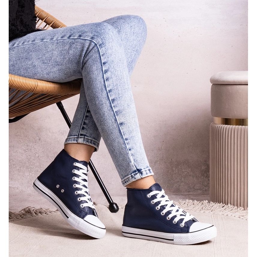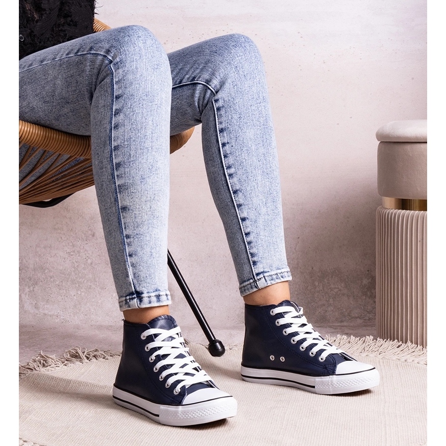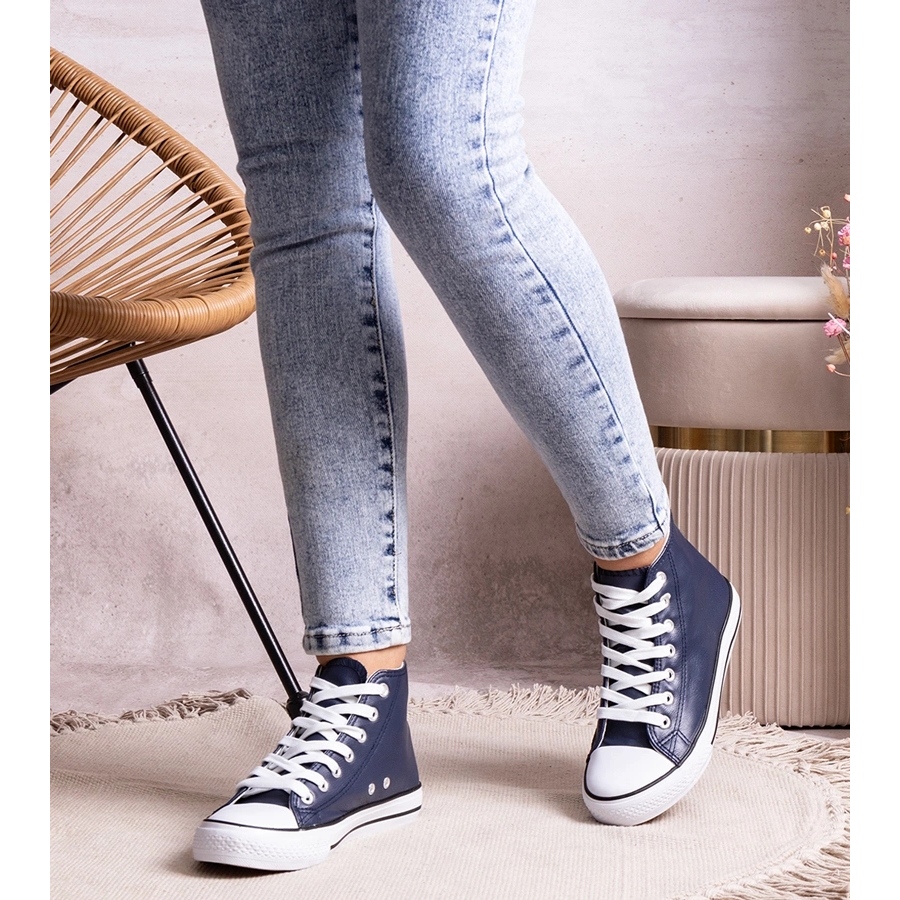 - Modelka: B262 Tmavě modré vysoké tenisky vyrobené z eko kůže