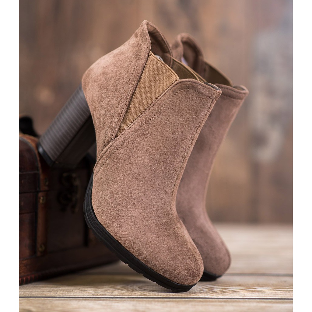 Holínky SHELOVET v hnědé barvě jsou perfektní volbou pro každou ženu, která si cení stylu a pohodlí. Tyto klasické nazouvací kotníkové boty vyrobené z vysoce kvalitního ekologického semiše budou perfektním řešením pro ty, kteří volí produkty šetrné ke zvířatům. Stabilní 8,5 cm vysoký podpatek zajišťuje komfort nošení i po dlouhou dobu, což z nich dělá skvělou volbu pro každodenní nošení.