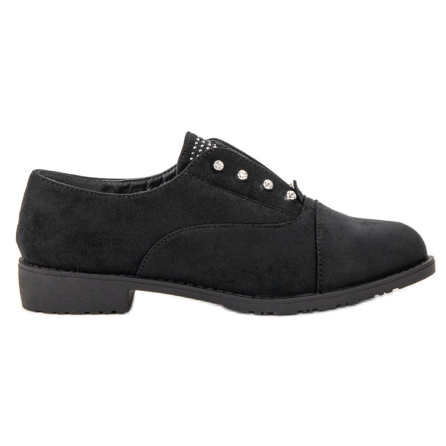 Boty se vyznačují plochým 3 cm vysokým podpatkem a zabudovaným měkkým podpatkem, který zajišťuje komfort nošení po celý den. Navíc jsou okouzleny jemnými kamínky a kamínky, které z nich dělají dokonalý doplněk každodenního stylingu. Díky černé barvě a klasickému, ležérnímu stylu je snadno zkombinujete s různými outfity bez ohledu na příležitost.