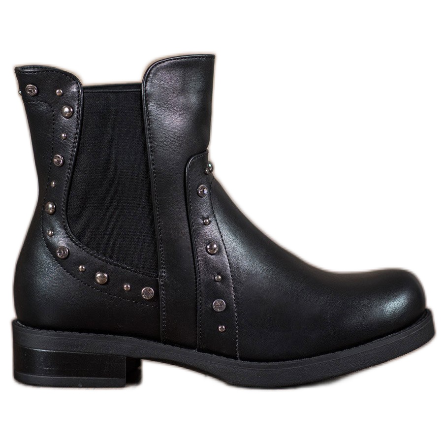 Boty se vyznačují lesklými kamínky, které jim dodávají rockový charakter. Díky výšce podpatku 3,5 cm jsou pohodlné pro každodenní nošení a vyvýšený a vyztužený podpatek bezpečně drží nohu. Zateplená podšívka a na dotek příjemná látka vložek z nich dělá ideální volbu pro chladnější dny.
