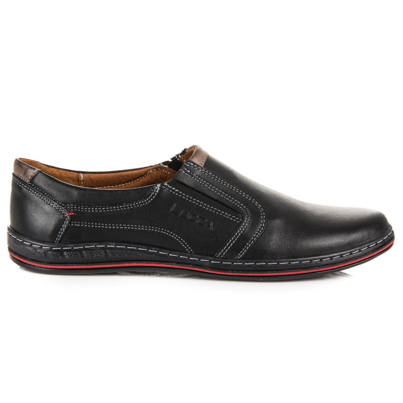 Elegantní slip-on boty z kůže Lucca v černé barvě jsou perfektní volbou pro moderního muže, který ocení klasický styl spojený s pohodlím. Vyrobeno z nejkvalitnější přírodní kůže, vnější část boty i stélka zajišťují nejen estetický vzhled, ale i komfort celodenního nošení.