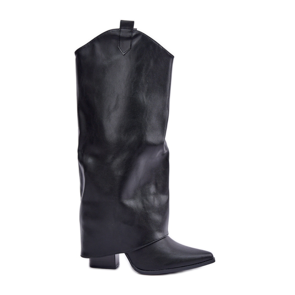 Inna marka Nazouvací kozačky s ohrnutým svrškem na podpatku, černé černá
