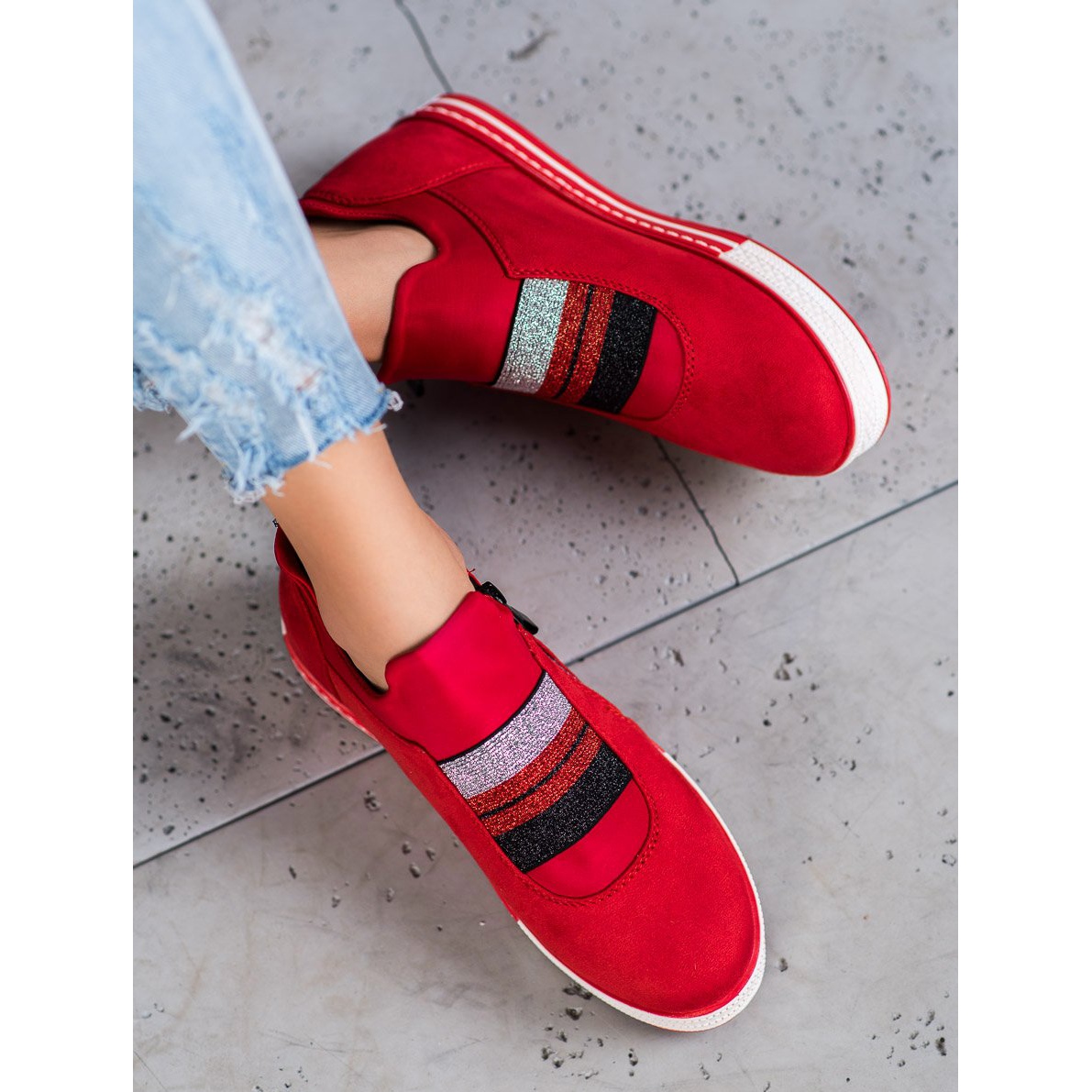 Vyměňte svůj šatník za červené tenisky od Ideal Shoes, které kombinují sportovní styl a módní akcenty. Tyto nazouvací boty s praktickým zipem jsou perfektním řešením pro ženy, které si cení pohodlí a vzhledu.