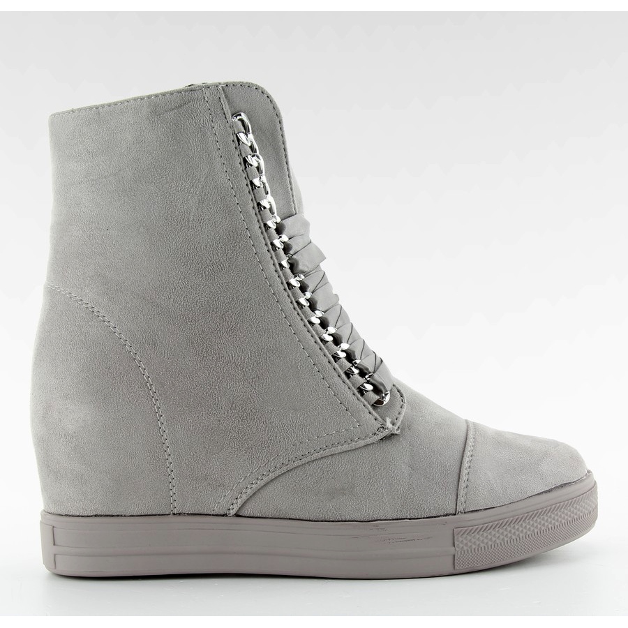 Extrémně tvarované tenisky NC92 v šedé barvě kombinují subtilní štíhlý design s praktickými řešeními. Vyrobené z ekologického semiše, nasazené na skrytém podpatku vysokém 7,5 cm, decentně zeštíhlují postavu a přidávají centimetry bez ztráty pohodlí. Ozdobné šněrování se saténovou stuhou jim dodává ženský charakter a skrytý zip na vnitřní straně usnadňuje rychlé oblékání. Vnitřek je celý podšitý jemnou kožešinou - ideální pro chladnější dny.