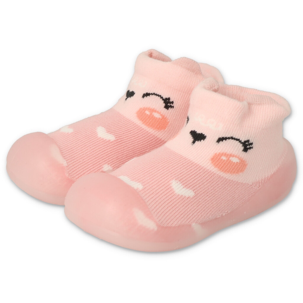 Tato vycházková obuv se skládá z elastické ponožky, která dokonale kryje chodidlo, a protiskluzové podrážky, která zajišťuje stabilitu a bezpečnost. Jejich promyšlený design znamená, že nezatěžují dětskou nožičku ani na ni netlačí, což je v tak rané fázi vývoje nesmírně důležité. Tvar botičky zajišťuje, že při pohybu miminka nekloužou, což zajišťuje pohodlí po celou dobu nošení.