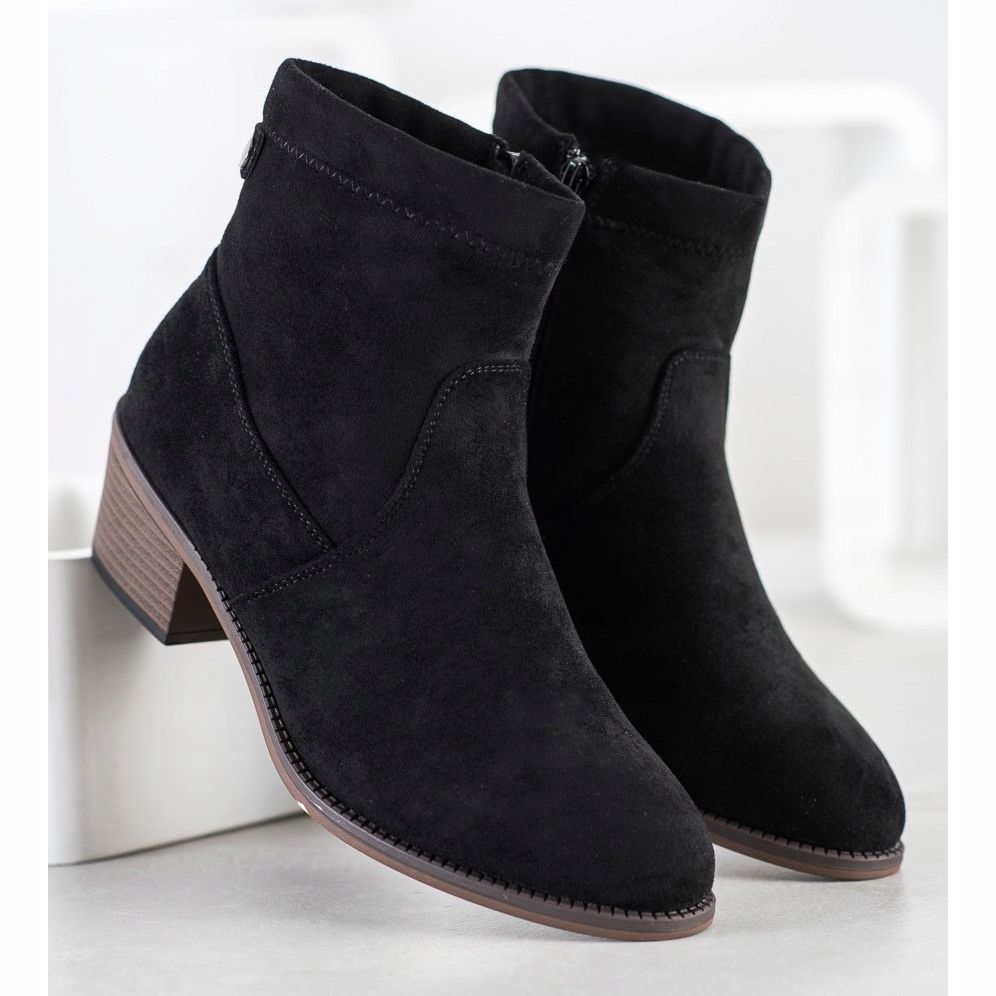 Tyto kotníkové boty vyrobené z vysoce kvalitní imitace semiše mají klasickou kulatou špičku a jejich elegantní 5,5 cm podpatek dodává jemné kouzlo. 12-13 cm vysoký svršek poskytuje dostatečnou oporu kotníku, což z nich dělá výbornou volbu pro chladnější dny. Vnitřní izolace navíc znamená, že vaše nohy nebudou chladné ani v těch nejchladnějších dnech.