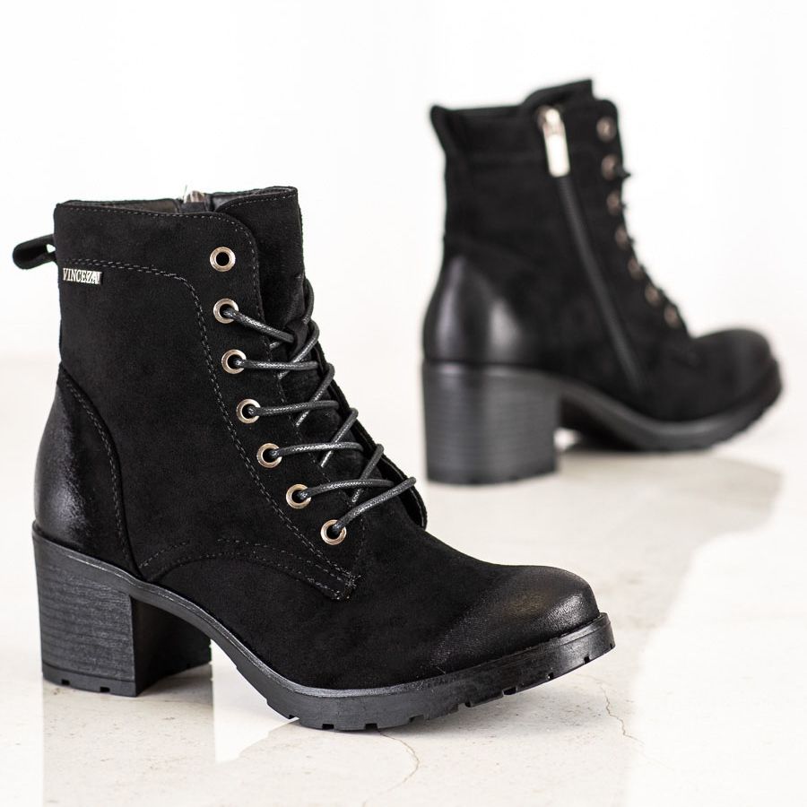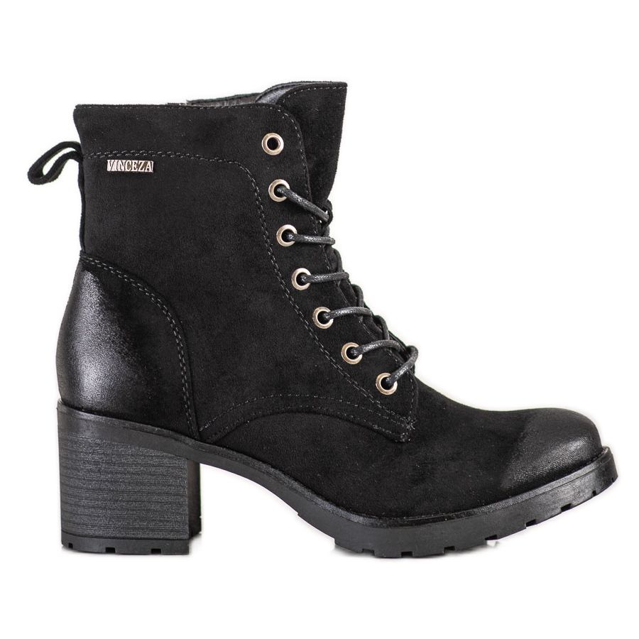 Ležérní kotníkové boty VINCEZA v černé barvě jsou perfektní volbou pro ženy, které chtějí spojit pohodlí s módním stylem. Tyto elegantní boty se vyznačují vybudovanou, vyztuženou patou, která zajišťuje výbornou oporu a stabilitu chodidla při každodenních činnostech.