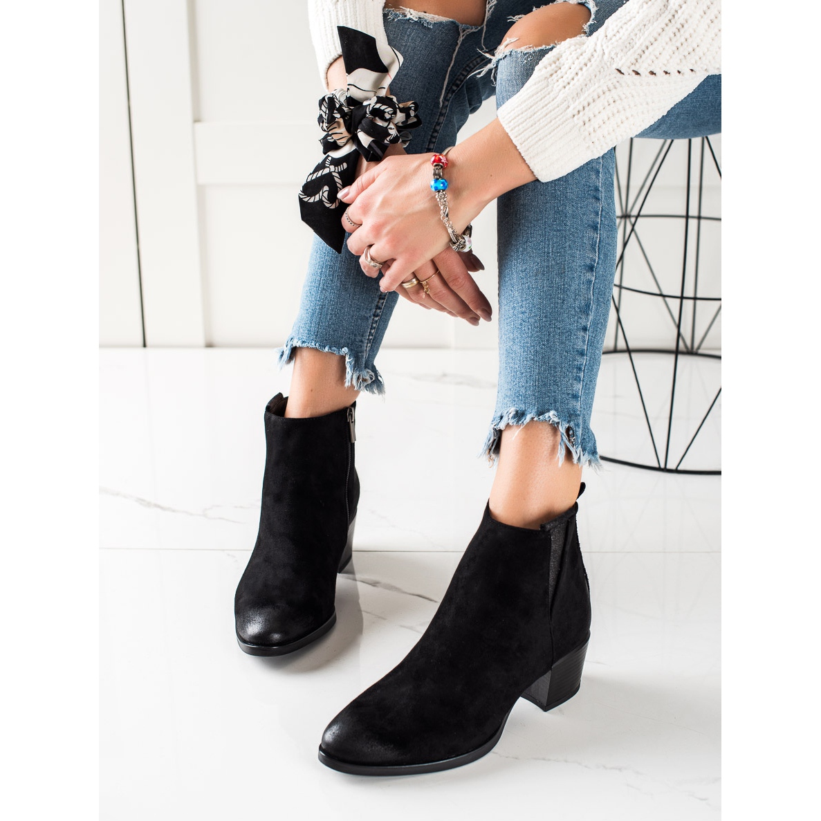 Stylové a pohodlné kotníkové boty W. Potocki jsou perfektní volbou pro ženy, které si cení jak módního vzhledu, tak pohodlí při nošení. Tyto černé ležérní kozačky vyrobené z vysoce kvalitní imitace semiše se skvěle hodí pro každodenní styling i pro elegantnější příležitosti.