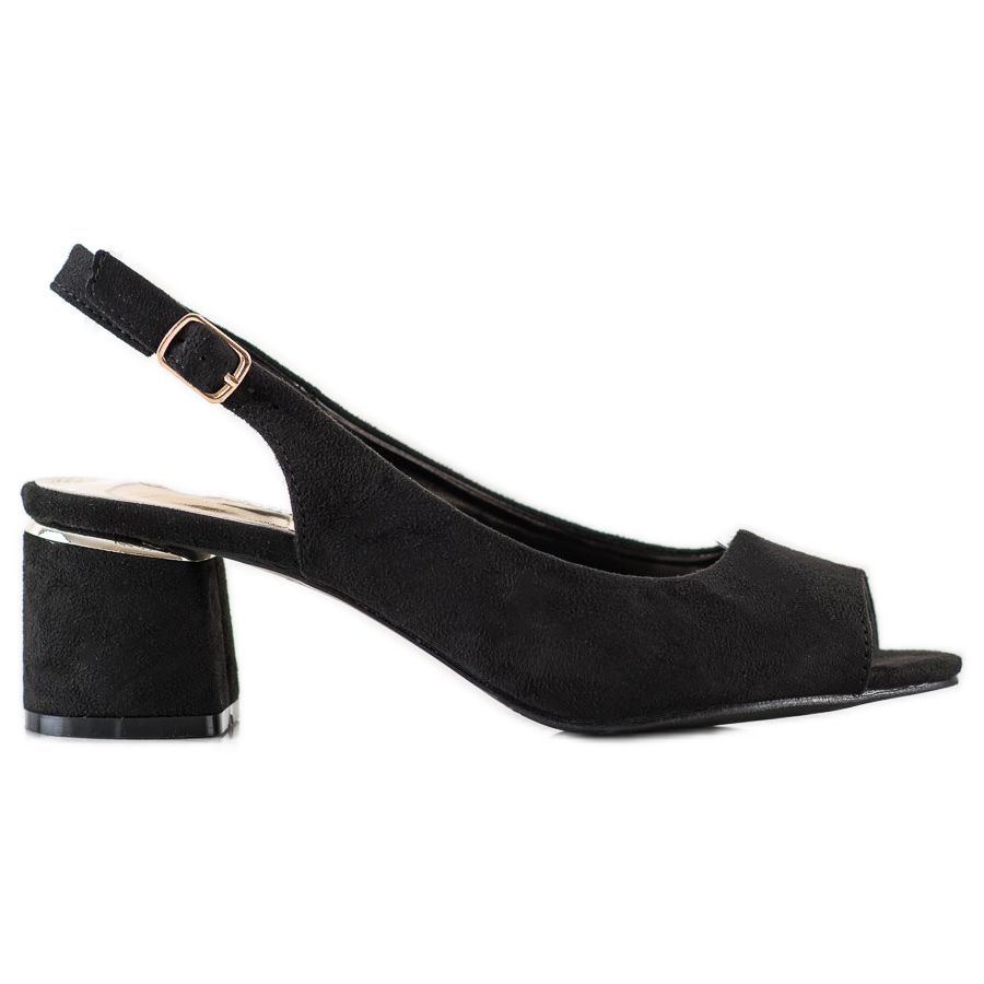 Sandály na vysokém podpatku Goodin Casual jsou ideální volbou pro ženy, které oceňují kombinaci elegance a pohodlí. Tyto sandály vyrobené z vysoce kvalitní imitace semiše v černé barvě se perfektně hodí do klasického i ležérního stylu. Díky otevřené patě a žádné špičce zůstávají nohy vzdušné, což z nich dělá perfektní volbu pro jarní a letní dny.