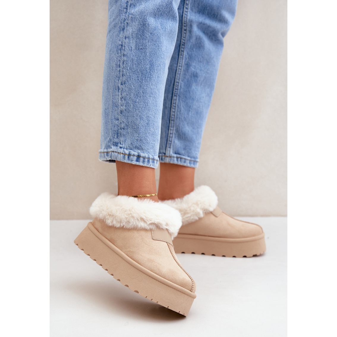 Inna marka Nízké sněhule s kožíškem na platformě Eco Suede, světle béžové béžový
