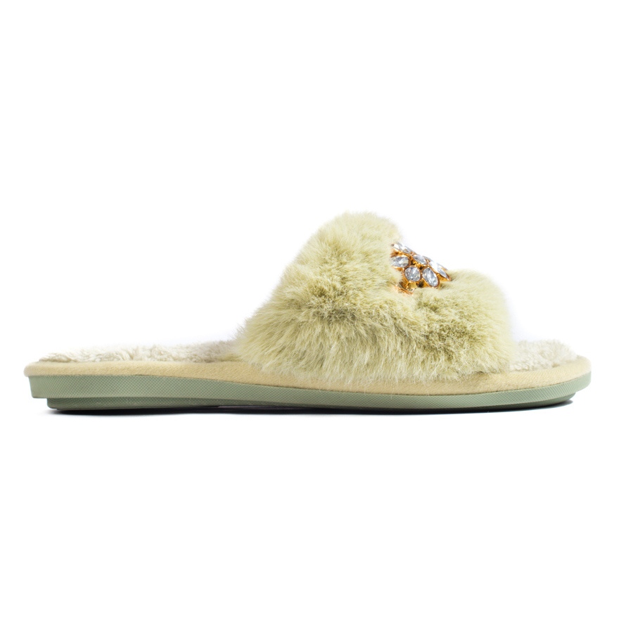 Podrobnosti: Olivové pantofle s kožíškem a krystaly od Shelovetu zelená