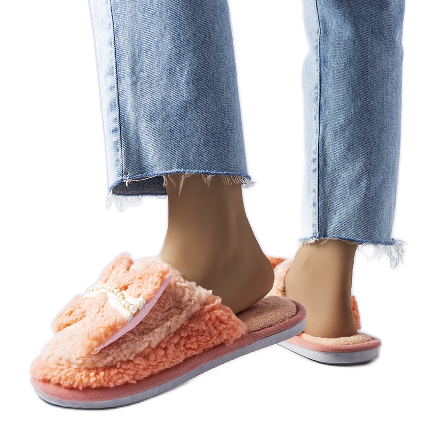 Oranžové pantofle s luky luky - stylové a útulné pro zimní dny