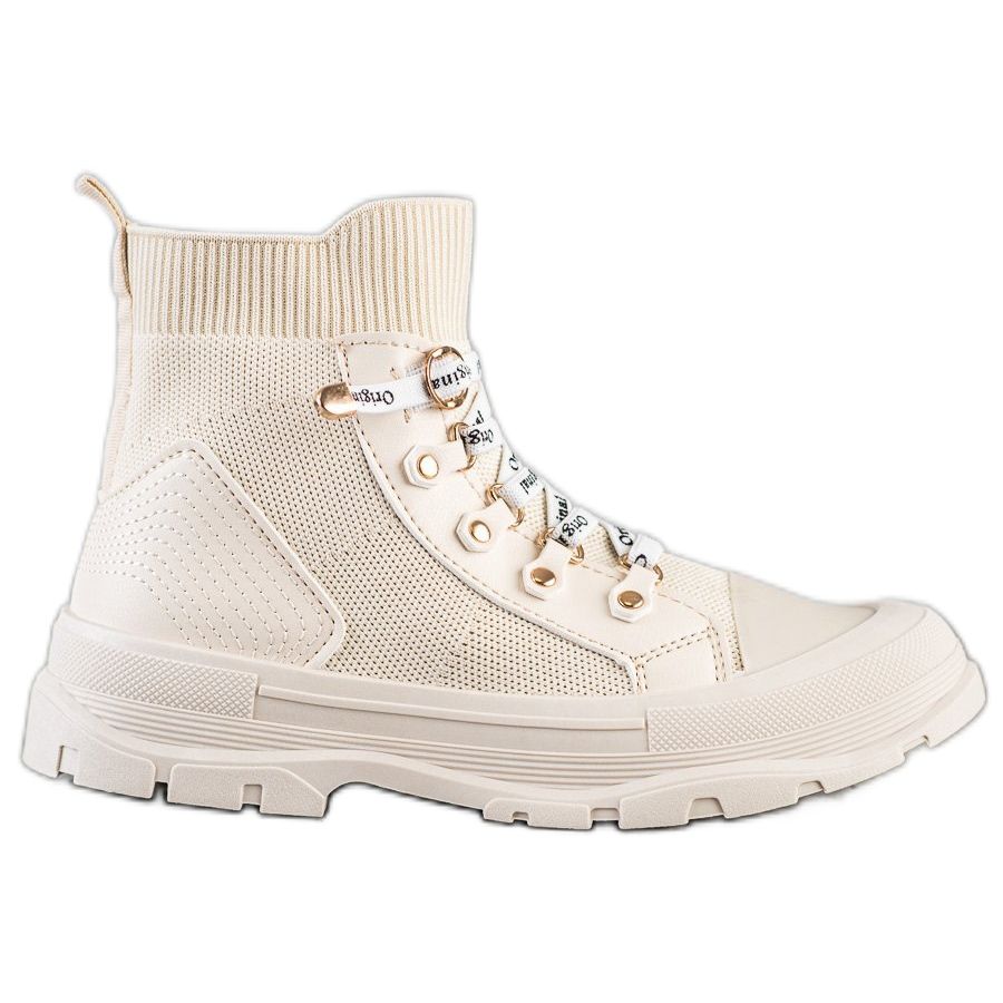 Svršek obuvi je vyroben z vysoce kvalitní ekologické kůže a textilních materiálů, což zaručuje odolnost a komfort nošení. Díky měkkému zabudovanému podpatku si můžete užívat pohodlí po celý den bez ohledu na to, zda jej strávíte ve městě nebo na procházce. Kulatá špička ukazuje jemný ženský styl a díky béžové barvě lze boty snadno sladit s různými styly.