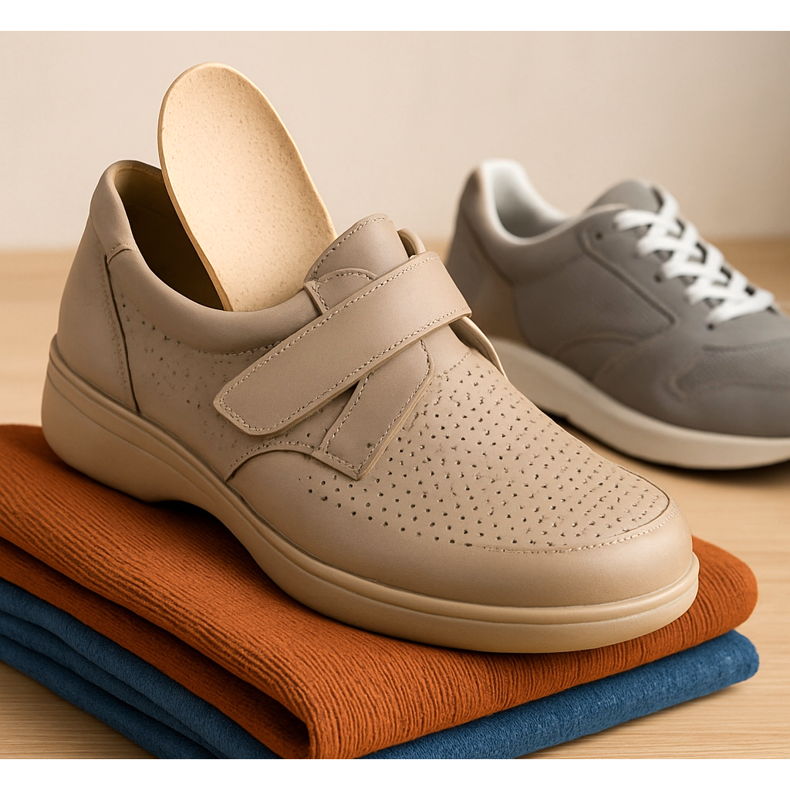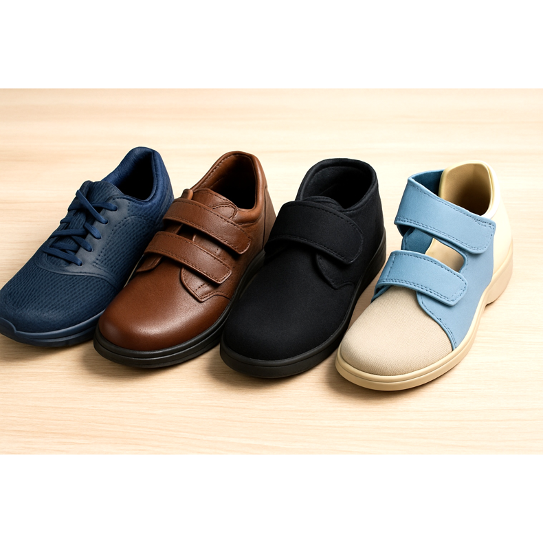 Specializovaná obuv s velmi měkkou podšívkou, bez vnitřních švů, širokým svrškem a nastavitelným zapínáním. Chrání jemnou pokožku před poškozením a umožňují použití speciálních vložek. Vyrobeno z prodyšných materiálů, které zabraňují hromadění vlhkosti.