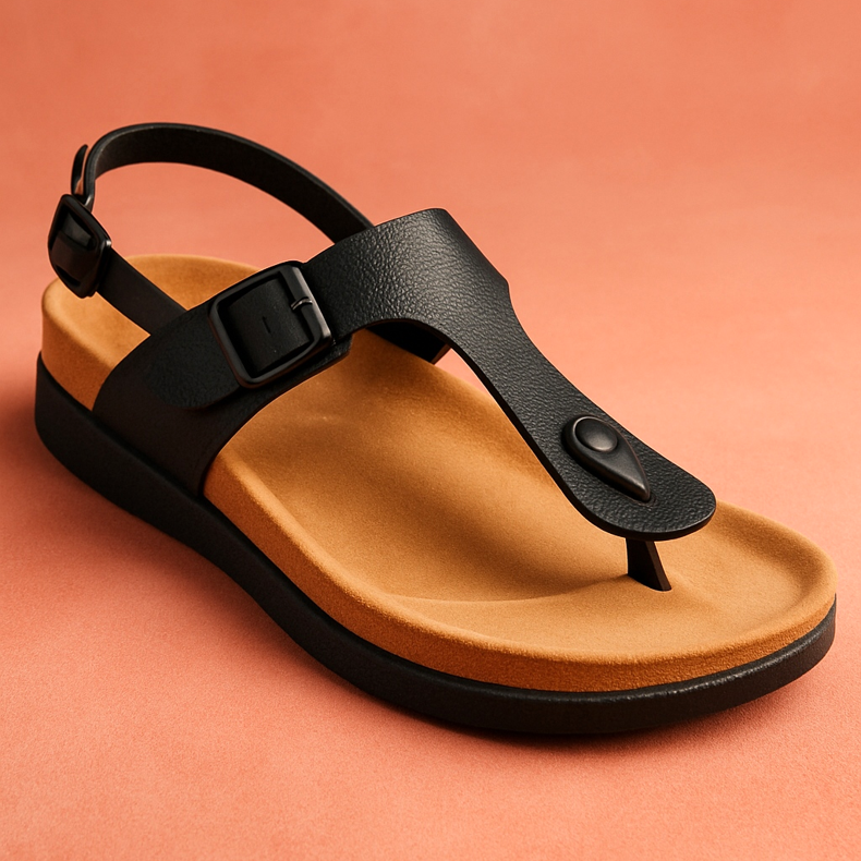 Nutná je silná podpora podélné klenby. Vyberte si ortopedické modely s jasně konvexní stélkou. Vyhněte se úplně plochým žabkám – problém jen zhorší.