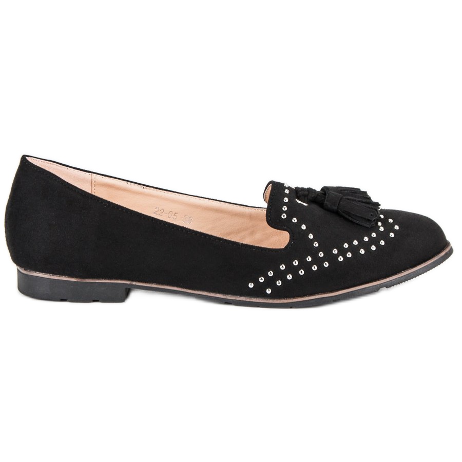 Charakteristickým prvkem těchto pánů jsou ozdobné třásně a kamínkové aplikace, které jim dodávají jedinečný styl. Vnitřek bot je podšitý ekologickou kůží, která zvyšuje komfort používání. Černé Super Me Lords jsou perfektní volbou nejen pro jarní a letní dny, ale dobře fungují i v chladničce, což z nich dělá univerzální doplněk šatníku každé ženy.