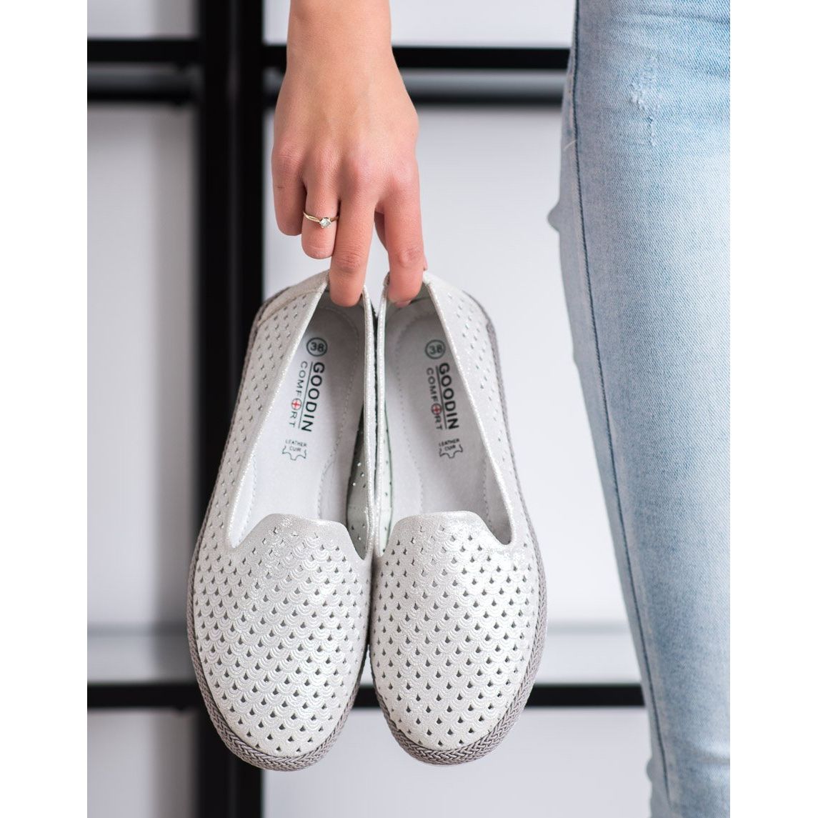 Představujeme elegantní a stylové bílé stříbrné lordy značky Goodin, které jsou perfektní volbou na jaro a léto. Tyto prolamované balerínky navržené s ohledem na ženy kombinují ležérní charakter s vysoce kvalitním zpracováním.