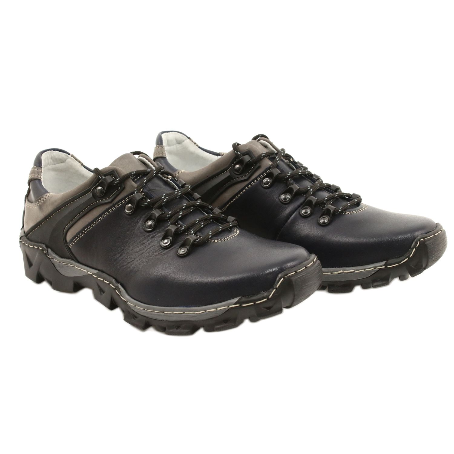 Bednarek Polish Shoes Bednarek Polish Shoes Pánská kožená turistická obuv 116 námořnická modrá šedá