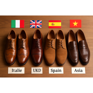 Itálie je známá elegancí a sofistikovaností, Velká Británie klasickým zpracováním a odolností, Španělsko nabízí vynikající poměr ceny a kvality, Portugalsko je čím dál tím známější a Asie dominuje v masové výrobě.