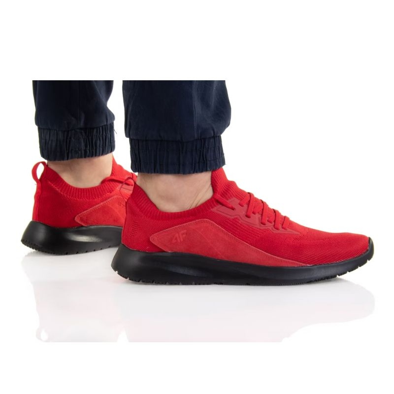 Moderní, nízká sportovní bota od 4F, model D4L22-OBML202, v intenzivní červené barvě. Navrženo pro každodenní aktivity - kombinují pohodlí, lehkost a sportovní styl, ideální pro město, pro procházku nebo pro trénink.