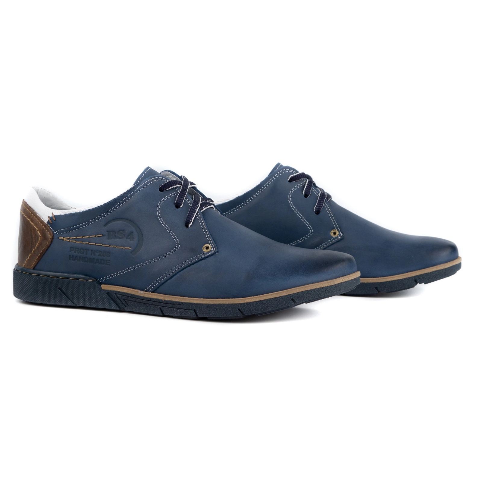 Objevte eleganci a pohodlí s pánskými botami Polbut 2103 v tmavě modré barvě s bílými akcenty. Tyto klasické boty kombinují jednoduchost s moderním stylem a jejich hladká, zaoblená špička a tradiční šněrování z nich činí ideální volbu jak pro každodenní nošení, tak pro zvláštní příležitosti.
