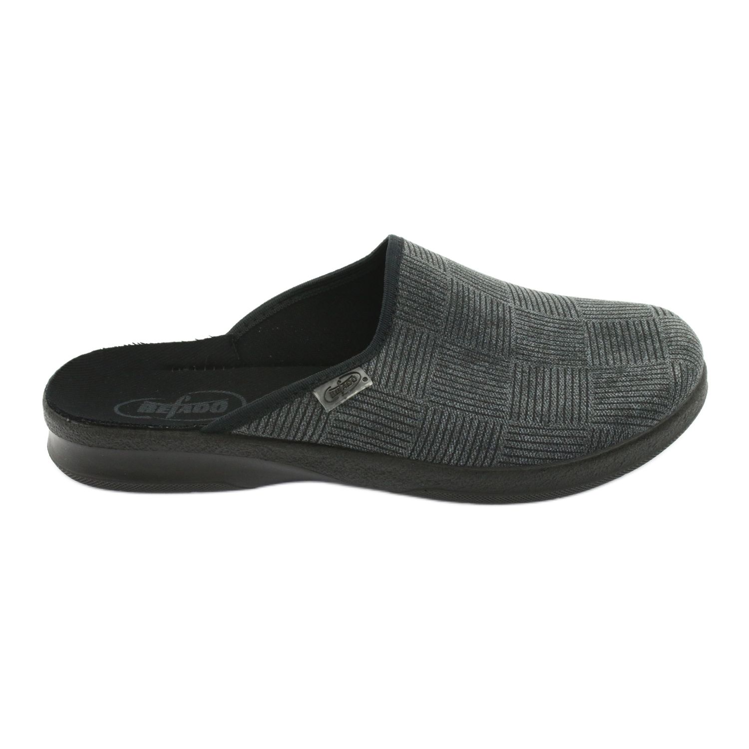 Pantofle Befado 548M014 v šedé barvě jsou perfektní volbou pro muže, kteří oceňují pohodlí a pohodlí při každodenním používání. Jsou vyrobeny z měkkých, přírodních a prodyšných tkanin, poskytují vynikající cirkulaci vzduchu, což udržuje nohy svěží a snižuje pocení.