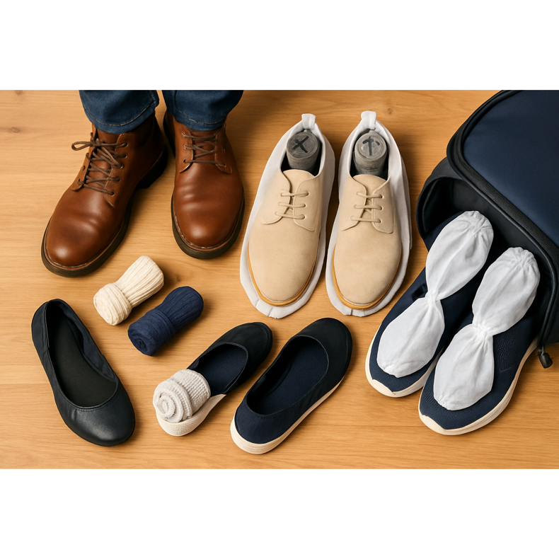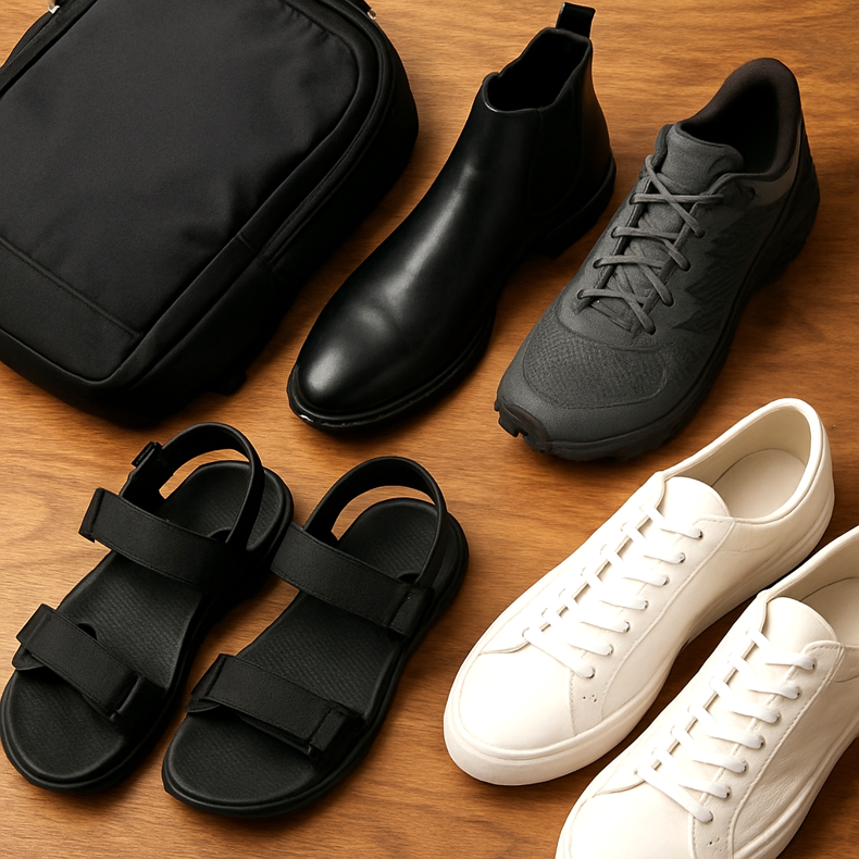 - Pár 2: Náhradní pár (lehké nazouváky, sandály, mokasíny) - zabaleno v zavazadle