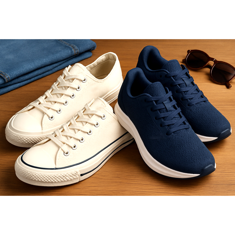Lehké plátěné tenisky jsou základem letní pánské běžné obuvi. Converse, Vans, Keds vyrobené ze vzdušného bavlněného plátna zajišťují dobrou cirkulaci vzduchu. Dostupné v nízké i vysoké verzi, v barvách od klasické bílé přes pastelové až po intenzivní odstíny. Noste naboso nebo s nízkými ponožkami. Snadná údržba – většinu modelů lze prát v pračce (jemné programy). Síťované tenisky nabízí ještě lepší ventilaci díky vzdušnému svršku ze síťovaného materiálu. Oblíbené ve sportovních řadách Nike, Adidas, New Balance. Ideální pro fyzickou aktivitu v horkém počasí a každodenní nošení.
