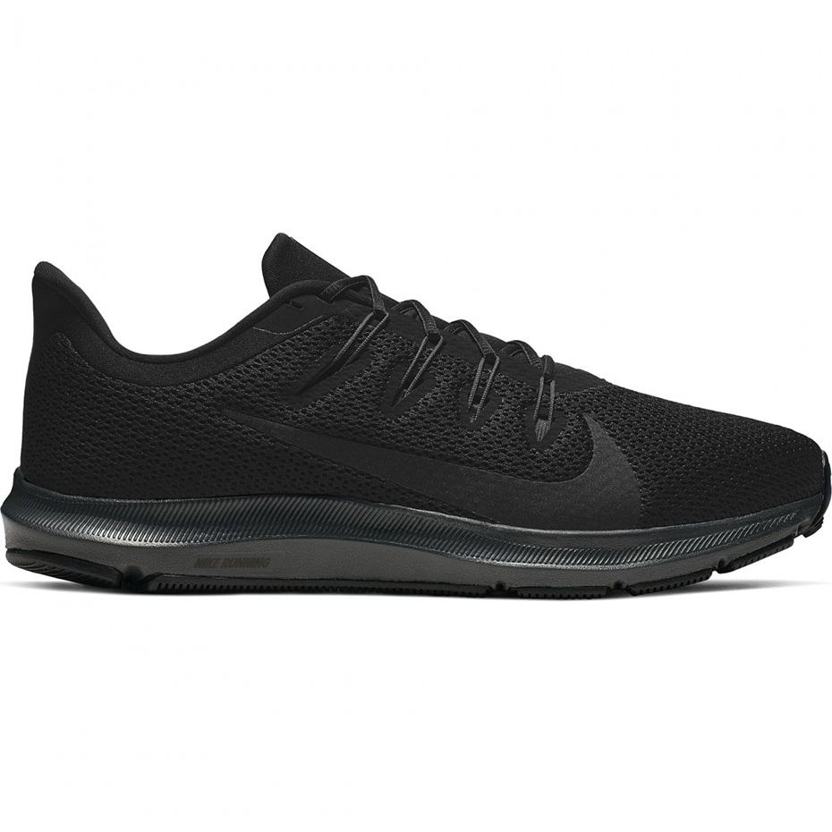 Men's Nike Quest 2 CI3787-003-Universal, lehká a pohodlná tréninková obuvi určená pro běžce s neutrálním profilem nohou. Černá, bezproblémová horní část z prodyšného oka (Mesh) poskytuje pohodlí a přiměřenou větrání a systém Flywire a klasický šněrování zaručují některé fit během dynamických pohybů.
