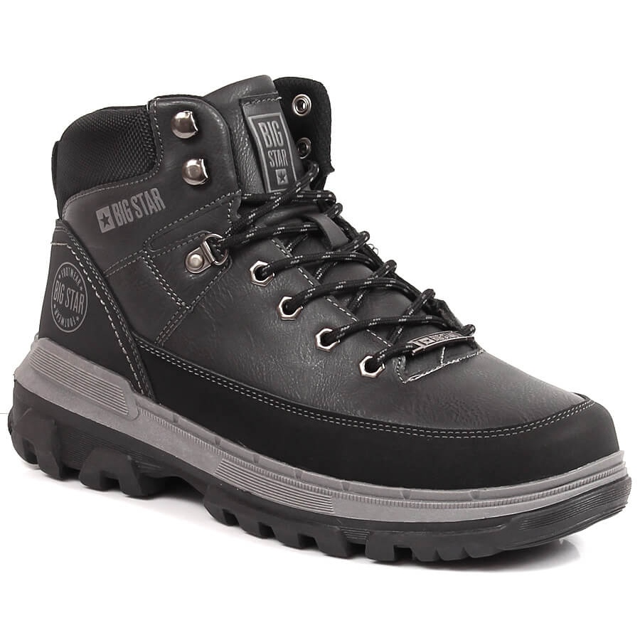 Big Star KK174120 Pánské boty jsou univerzální, vysoké černé boty, určené pro každodenní použití a lehké trekking. Vyrobeno z organické kůže, s podšívkou tkaniny a vložkou - kombinují pohodlí, trvanlivost a moderní, příležitostný vzhled.
