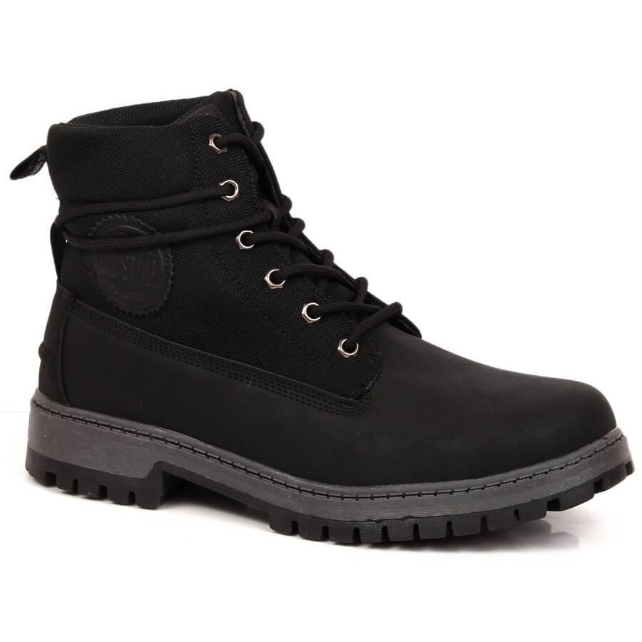 Pánské boty s velkou hvězdou moderních mužů KK174206 jsou návrhem pro muže, kteří hledají odolnou, univerzální obuv pro podzimní a zimní sezónu. Vyrobeno z ekologické kůže v klasické černé barvě, připevněné tkaničky, natáhne se po kotníku a bude pracovat jak v městských stylizacích, tak během lehkého trekkingu.