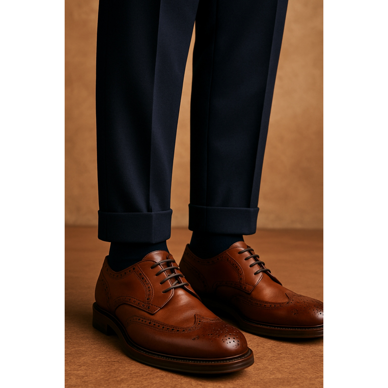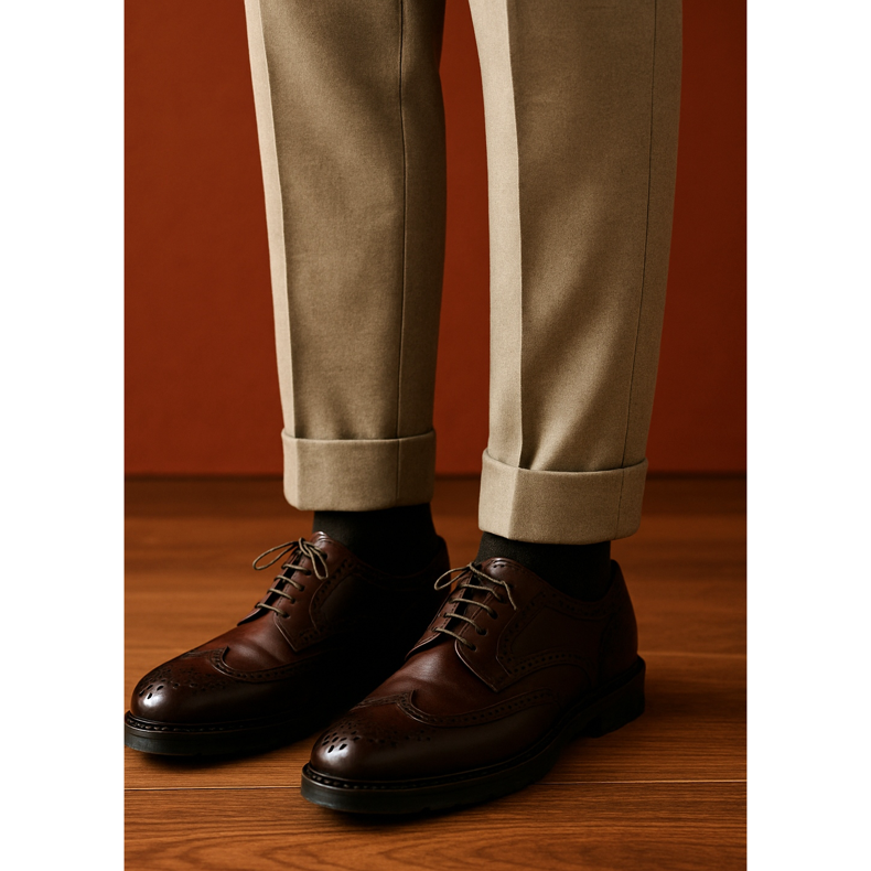 - Střední a vysoká výška — manžety opticky zkracují nohu; u vysokých mužů vyrovnávají proporce.