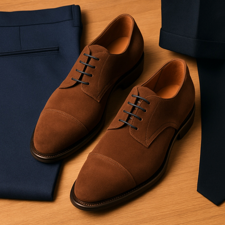 - Sako + košile bez kravaty — boty: brogues, derby, mokasíny.
