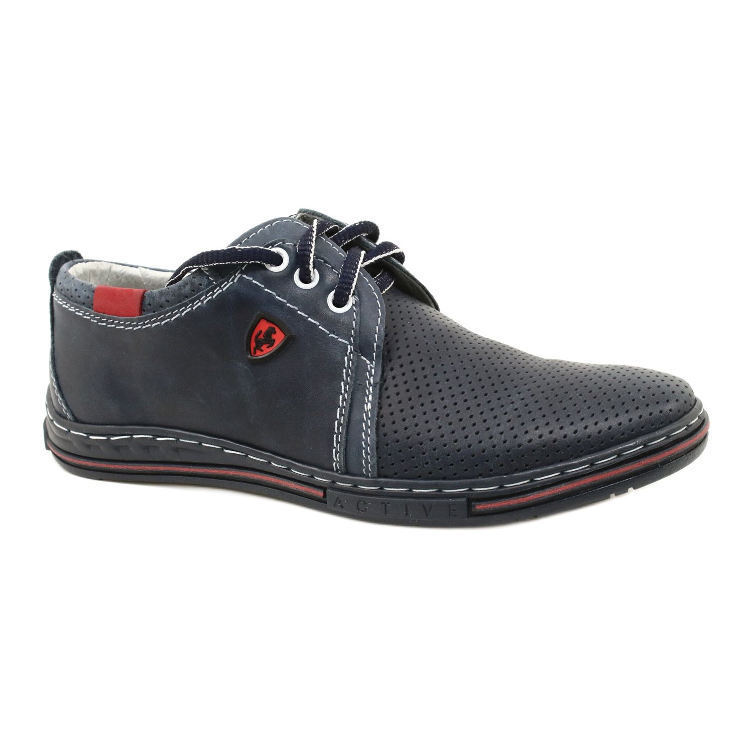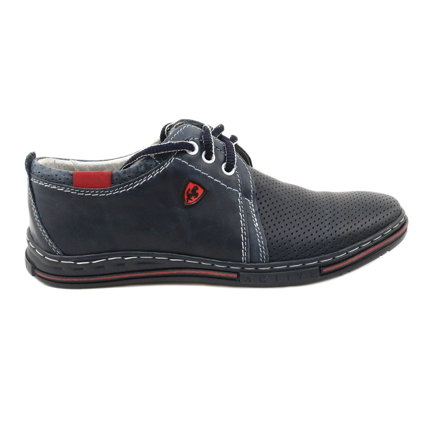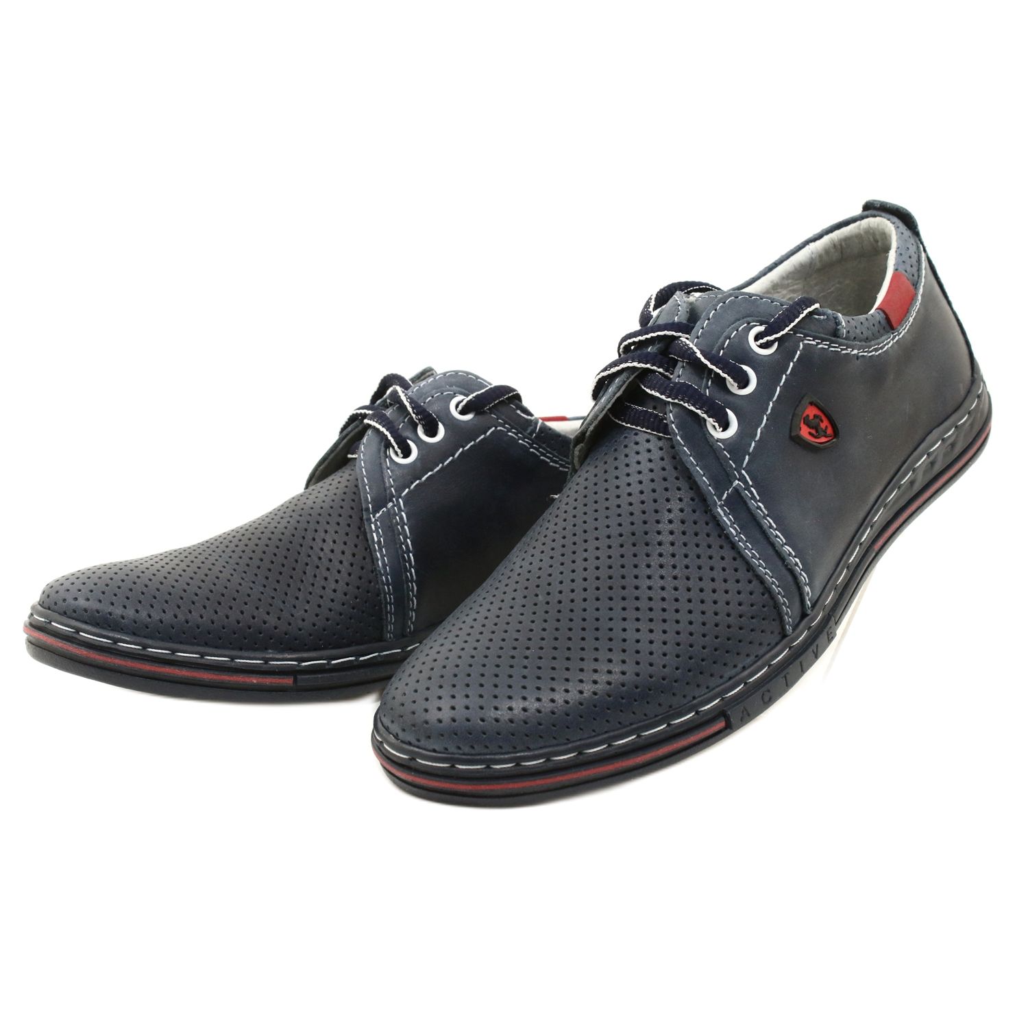 Podrobnosti: Polbut Pánské kožené boty 343P, perforace, tmavě modrá modrý